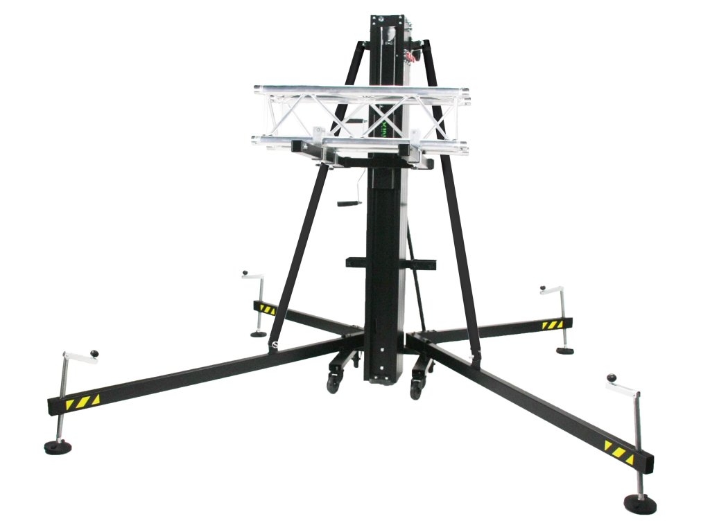teleskopický stativ pro Line Array, LED obrazovky a větší trussové sestavy, násuvné nohy, max. výška 8 m, max. 300 kg, hmotnost 208 kg