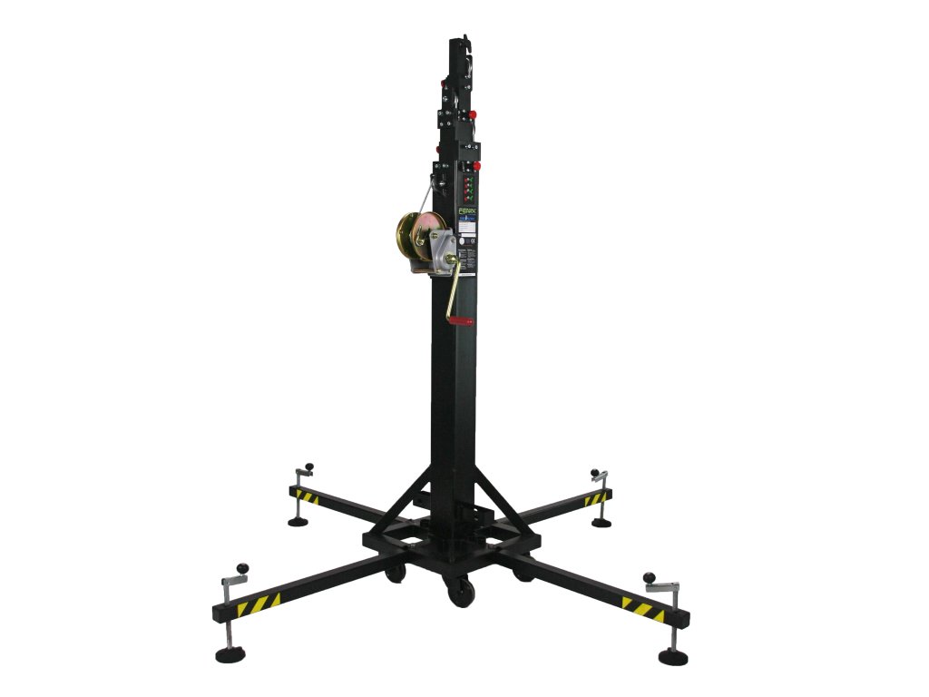 Fenix - MEGARA 300 • teleskopický stativ 6,1 m • násuvné nohy • maximální zatížení: 300 kg • výška ve složeném stavu: 1,92 m • pracovní plocha: 2 x 2 m • hmotnost: 90 KgDodatočné parametre
