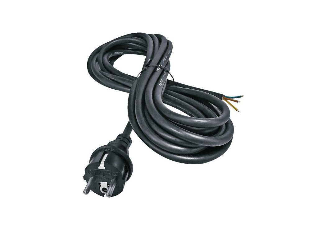 Flexošňůra gumová 3x2,5mm, 5m • gumová flexo šňůra s neoddělitelnou 2P+PE vidlicí • guma H05RR-F 3G x 2,5mm2 • barva: černá • ~250 V/16 A max • délka 5m • prodejní obal: 1 ks, sáček s headercardem