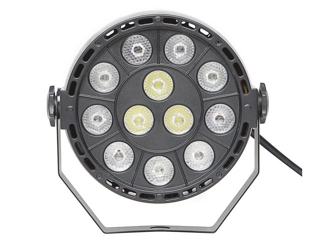 LED PAR 12 x 3 W lampa s 12 LED diodama, každá z nich má 3 W. Přednastavení Vám umožní kontrolovat každou barva světla zvlášť. Světlo je možné ovládat přes DMX512 protokol. LED PAR 12 x 3 W, lze usadit na stativ.