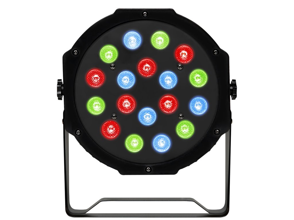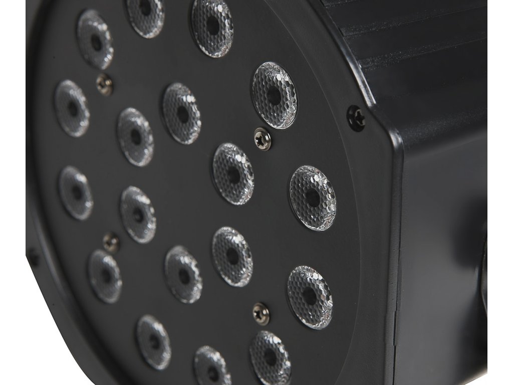 LED PAR 18 x 1 W je vybaveno 18 bodovými LED světly. Jako ostatní zmíněná světla sobě ukrývá přednastavení, které nabízí kontrolu každého jednotlivé barvy. Světlo LED PAR 18 x 1 W je lehké, snadno se s ním manipuluje a je možné ho bezpečně usadit na stativ