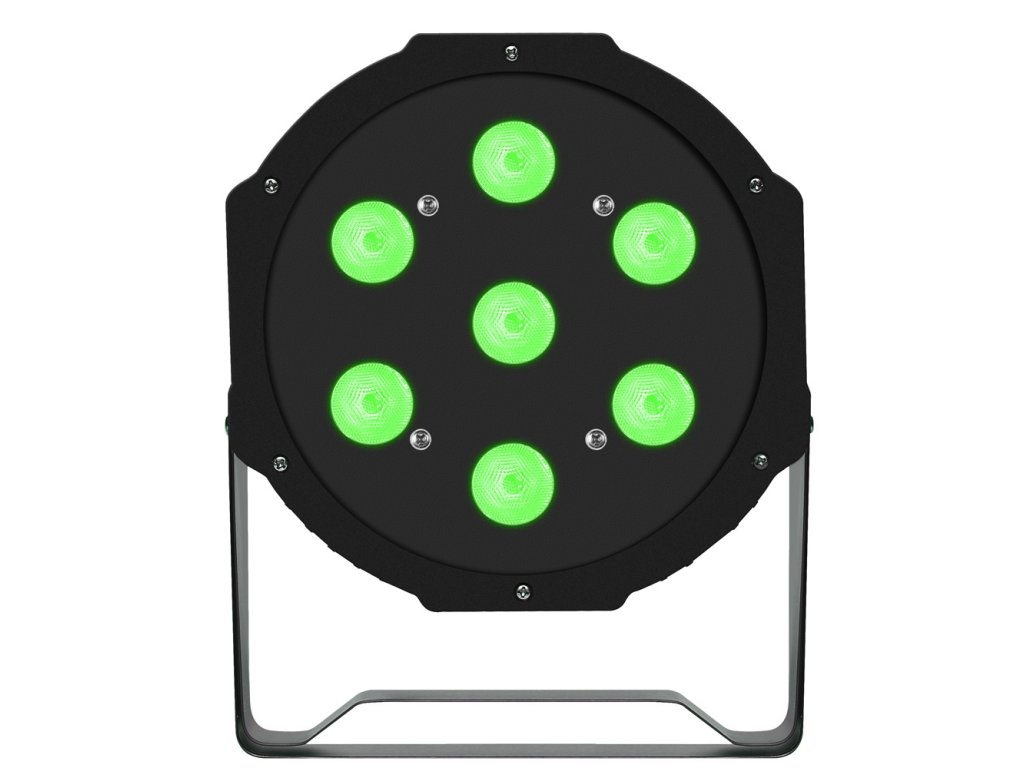 PAR LED 7 x 12W (5 in1) v user frendly prostřední si může uživatel vybrat z nepřeberného množství barev. Světlo vyniká svou lehkostí a přenositelností, je přednostně navrhnuto pro kapely a DJs, které ocení jeho jednoduché nastavení.
