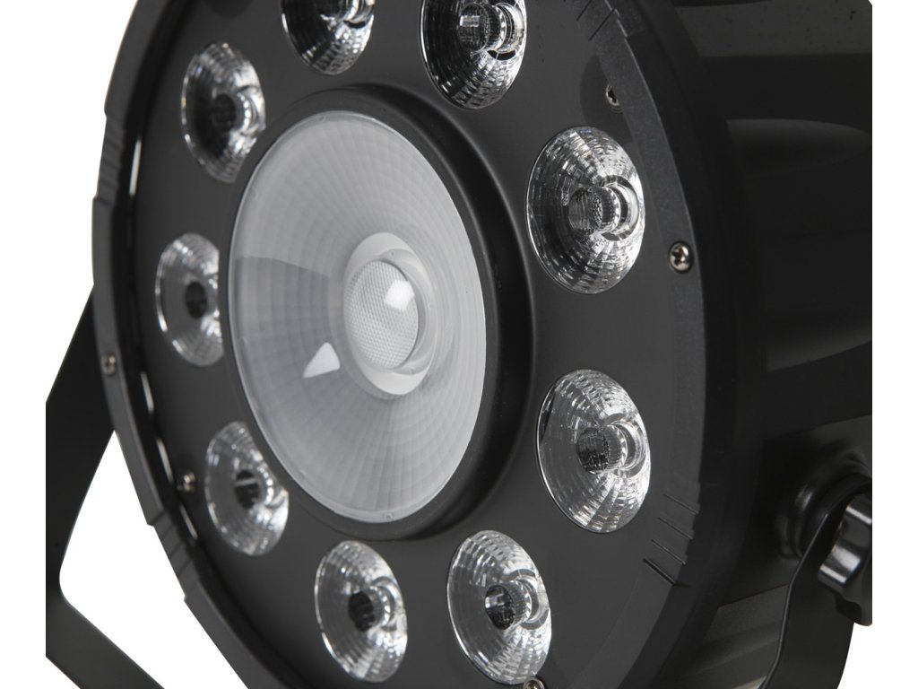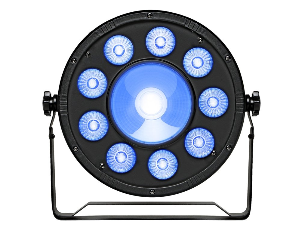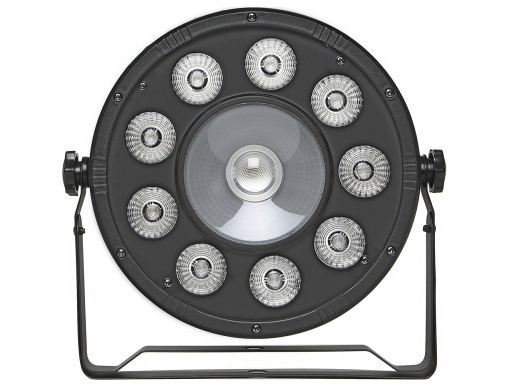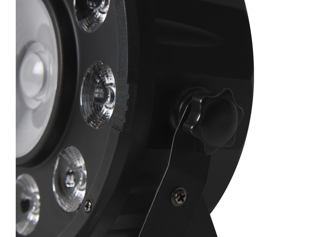 LED PAR 9 x 10 W + 1 x 20 W je lehké tenké světlo osazené devíti LED o výkonu 10 W a s centrálním LED o výkonu 30 W. Master/Slave preset umožnuje rychlé nastavení světelné instalace. LED PAR 9 x 10W + 1 x 20W komunikuje na standardu DMX512. Světlo lze také uchytit na stativ