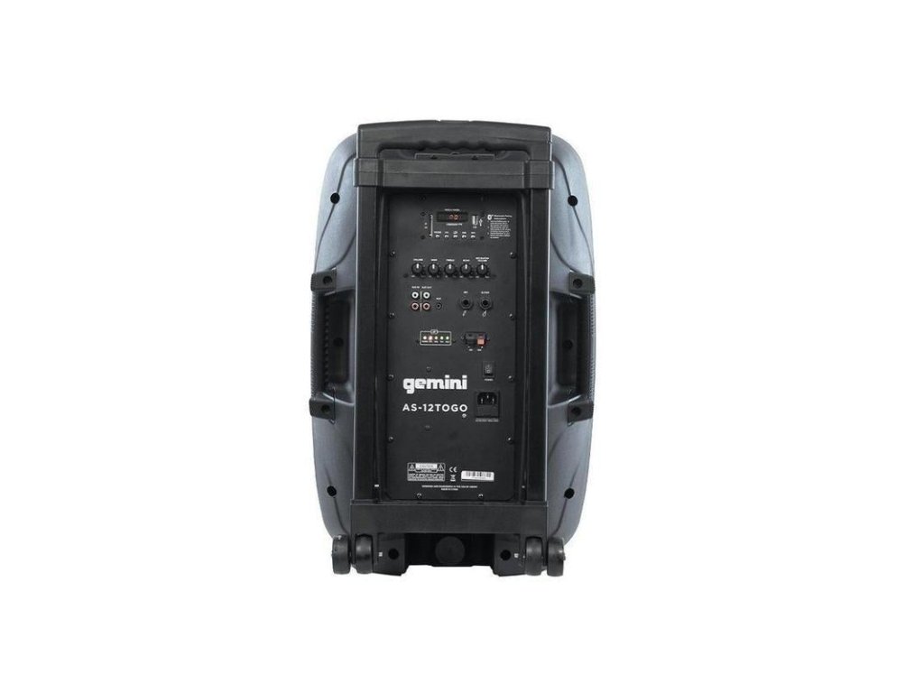 Gemini AS-12TOGO je výkonný 1500 W (Peak) přenosný reprobox s dobíjecí baterií v robustním provedení s integrovanou rukojetí a kolečky navržený jako univerzální řešení pro konference, mobilní a pouliční umělce, bohoslužby, oslavy aj. Díky dlouhé výdrži baterie a 12“ basovému reproduktoru se skvěle hodí i pro taneční párty, přičemž i při vysokém výkonu je stále kompaktní a snadno manipulovatelný pro přenosné aplikace a touring.