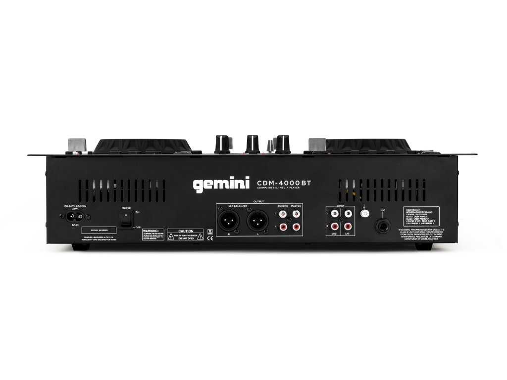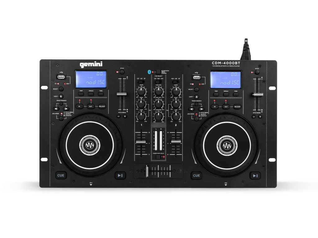 Gemini CDM-4000BT je výkonný a cenově dostupný DJ systém obsahující mixpult a dva přehrávače CD, USB a Bluetooth. Nabízí snadné vyhledávání skladeb a funkce scratch a pitch bend pomocí dvou jog koleček. Umožňuje nechat notebook doma; vše potřebné k přehrávání a míchání je integrováno.