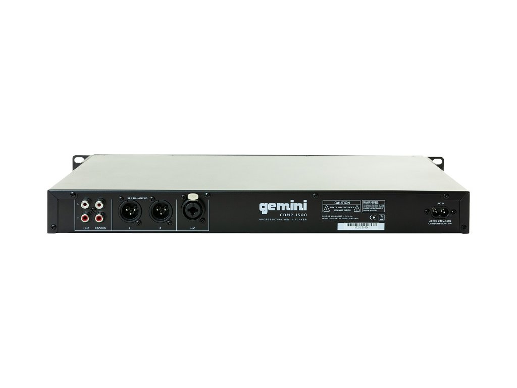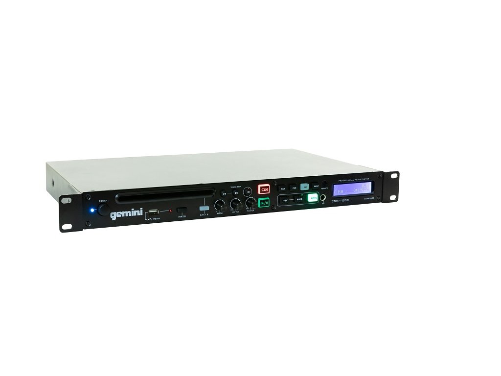 Gemini CDMP-1500 je multimediální profesionální přehrávač CD/USB s pokročilými funkcemi v tenkém (1 RU) provedení. Kromě běžných ovládací prvků pro přehrávání a výběr skladby lze naprogramovat seznam skladeb pro přehrání, upravovat ladění (rychlost přehrávání), volit režimy přehrání jedné nebo všech skladeb a opakovaní skladby a dokonce pohotově vytvořit a spouštět libovolnou smyčku hudebního materiálu nebo ve skladbě přeskočit (s přesností 1 frame) na předem nastavený spouštěcí (Cue) bod.