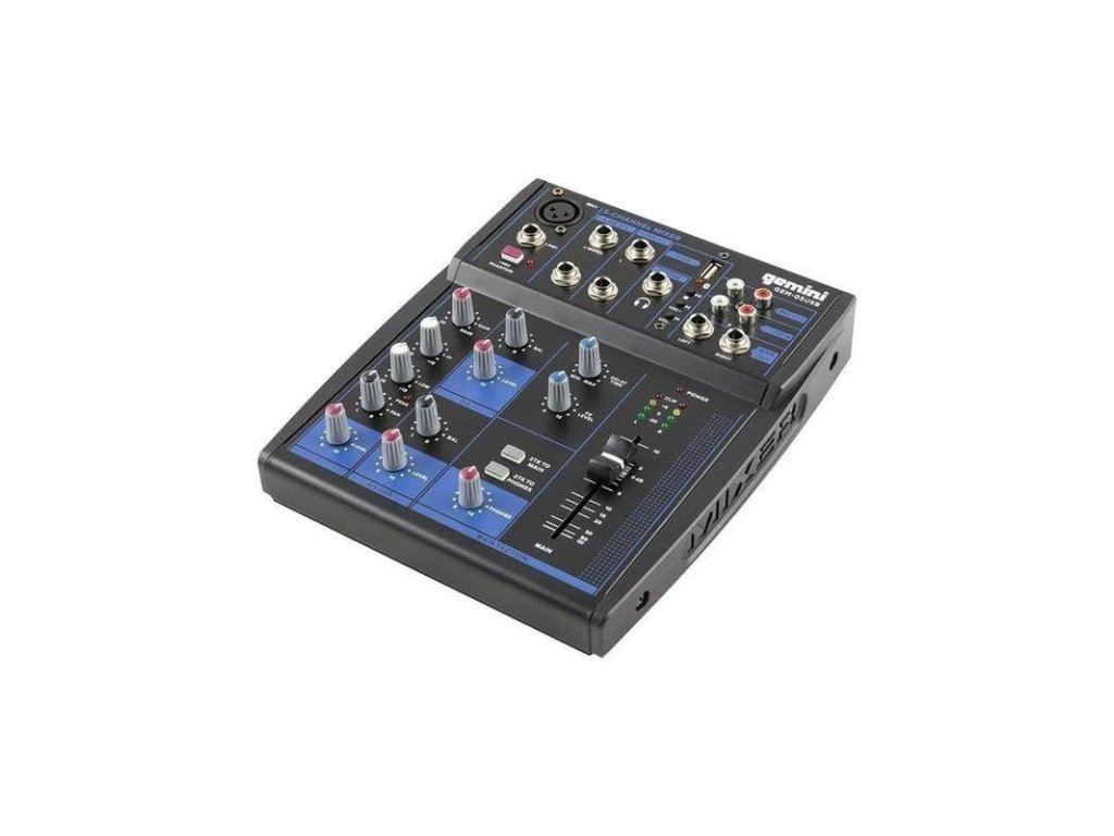 Nový mixážní pult Gemini GEM-05USB je vybaven 5 vstupy, 1 nejmodernějším mikrofonním předzesilovačem s fantomovým napájením, Bluetooth streamingem, USB přehráváním, interním Delay a 2-pásmovým ekvalizérem.