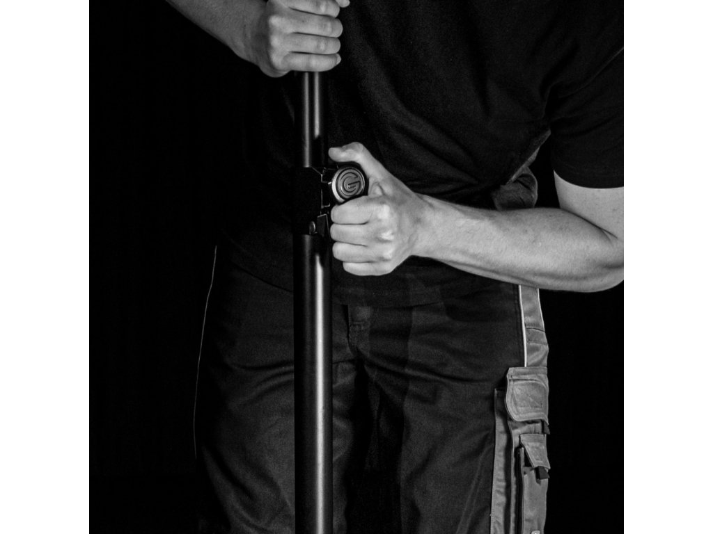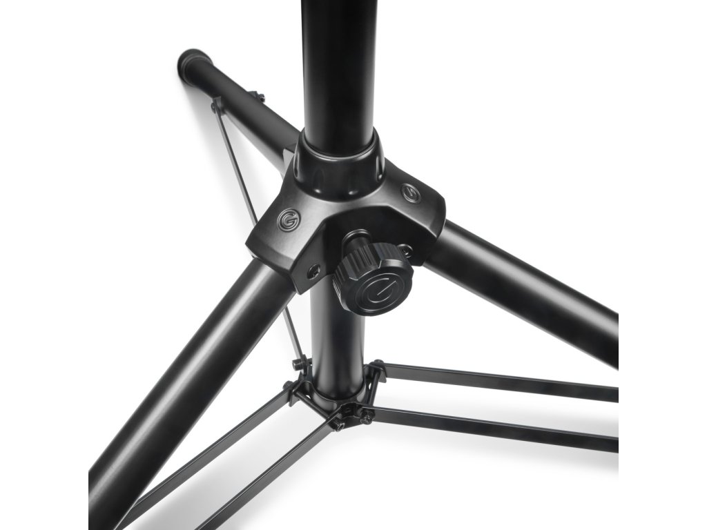 Stabilní trojnohý stojan z řady Touring německé značky Gravity je vyroben z odolné oceli, která si zachovává nízkou hmotnost i pro snadný transport. Stejně jako u dalších produktů této značky také TSP 5212 LB je osazeno ergonomicky tvarovanými šrouby, které jsou potaženy pryží z termoplastu umožňující velmi rychlé a pohodlné nastavení požadované výšky. U závitu nastavující výšku nechybí bezpečnostní pojistka, mechanismus je navíc vyroben z oceli a je tak téměř nezničitelný. Odlévaná hliníková základna trojnožky je velmi stabilní, nohy mají gumová zakončení. Ke stojanu lze doko upit sadu barevných kroužků pro snadné odlišení.