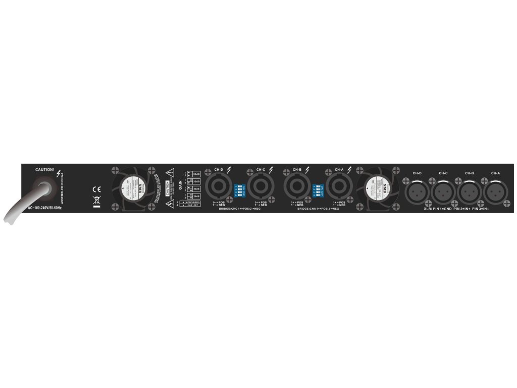 • Výkon 4x 1000W/8ohm, 4x 1700W/4ohm, 4x 2890W/2ohm