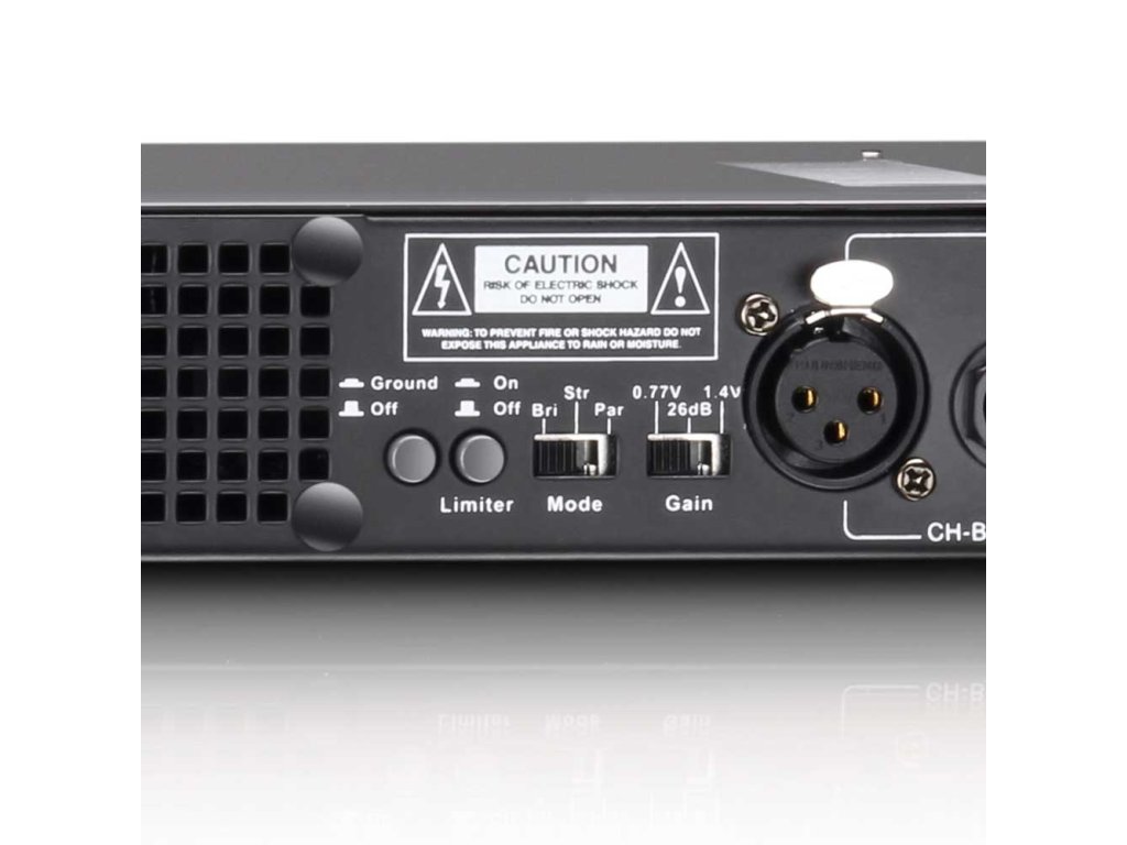 • Ovládání: On/Off, hlasitost, režim (bridge/paralelní/stereo), ground lift, limitér, zisk