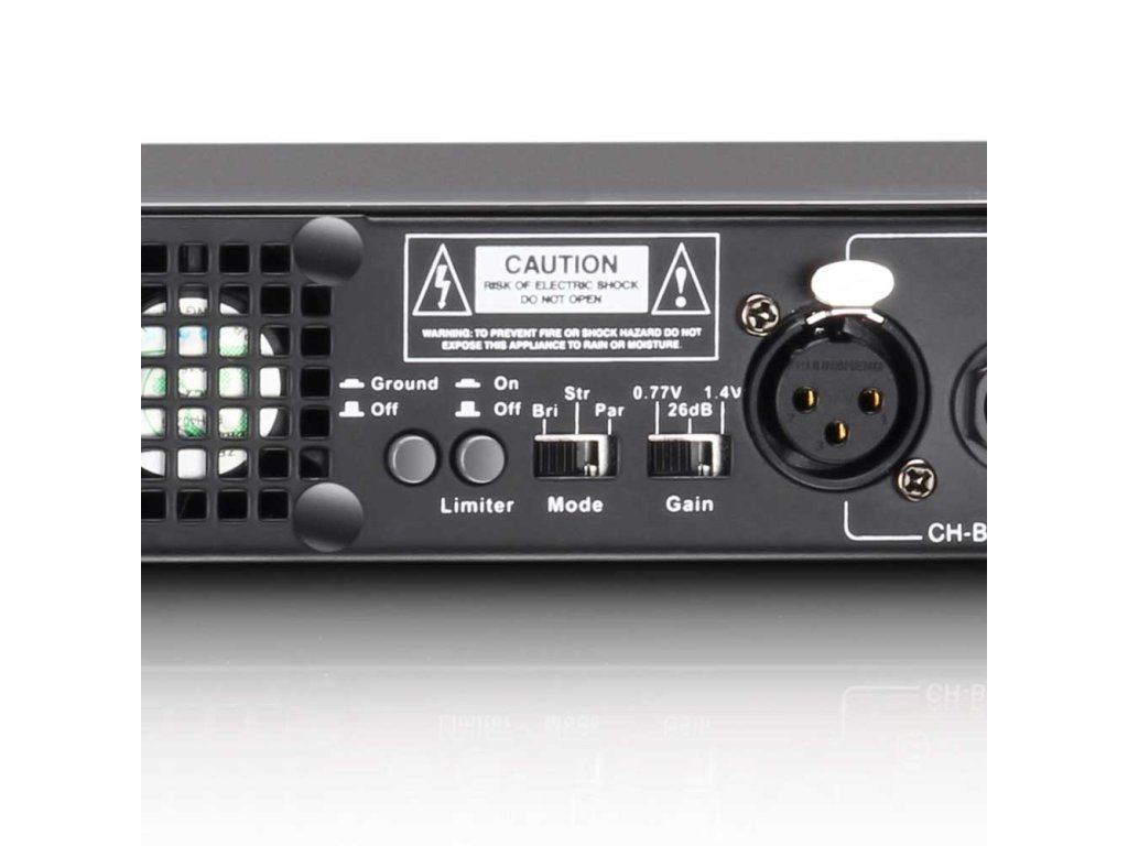 • Ovládání: On/Off, hlasitost, režim (bridge/paralelní/stereo), ground lift, limitér, zisk