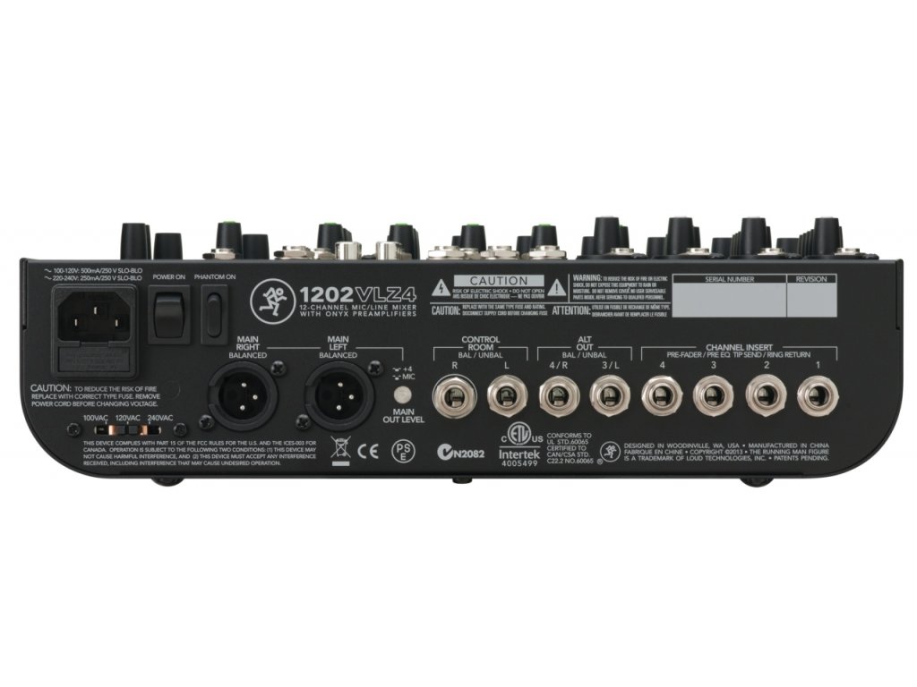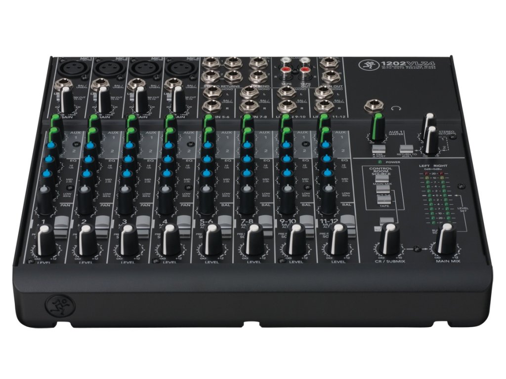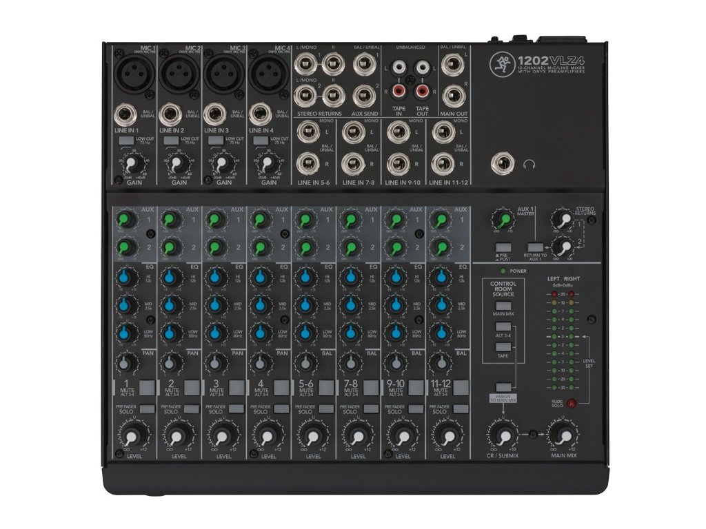 Mackie 1202 VLZ4 • 12-kanálový mixážní pult • 4x mono vstupy • 4x stereo páry • 2x stereo return • 2x AUX send • 8x DI Out • 4x Group/Bus Out • phantomové napájení 48V • 75Hz Lo Cut filtr na mikrofonních kanálech • rozměry: 273 x 75 x 303 (mm) • hmotnost: 3 kg