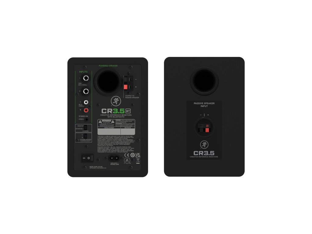 Mackie CR3.5 se prodávají vždy v páru, přičemž jeden z monitorů napájí svým zesilovačem skrze reproduktorový kabel druhý. Monitory disponují symetrickými vstupy TRS, nesymetrickými RCA a také stereo vstupem pro rychlé připojení telefonu či notebooku.