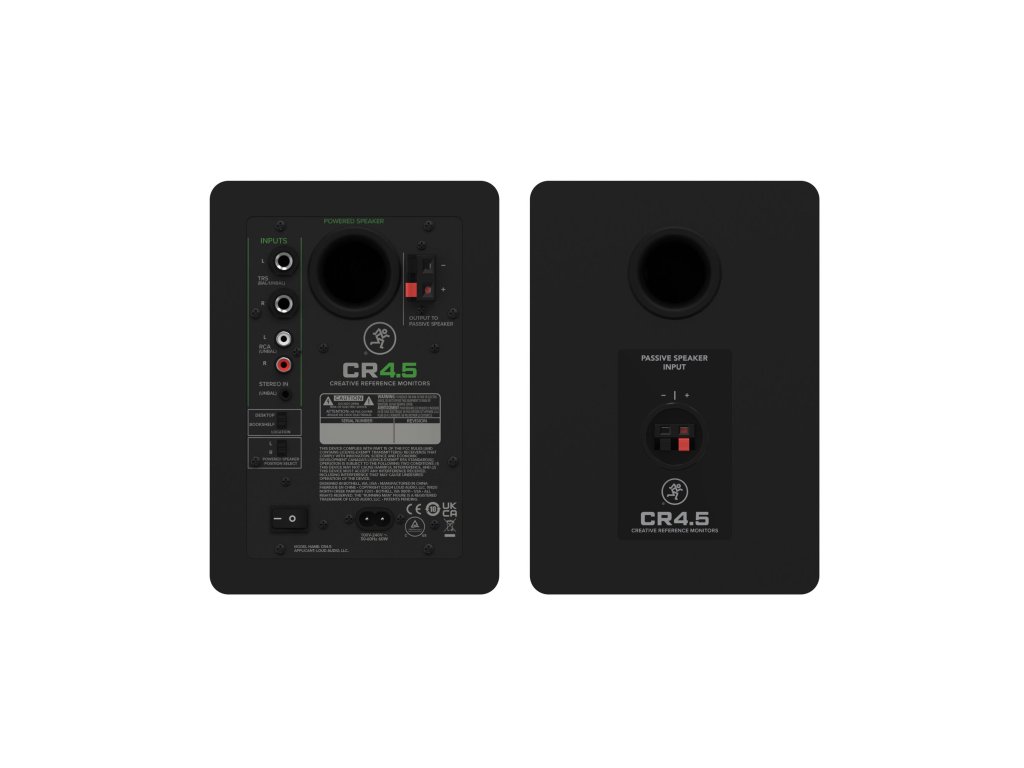 Mackie CR4.5 se prodávají vždy v páru, přičemž jeden z monitorů napájí svým zesilovačem skrze reproduktorový kabel druhý. Monitory disponují symetrickými vstupy TRS, nesymetrickými RCA a také stereo vstupem pro rychlé připojení telefonu či notebooku.