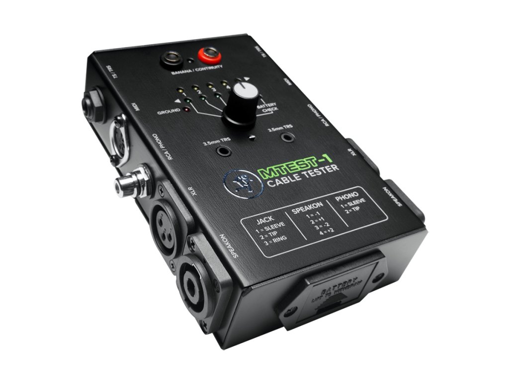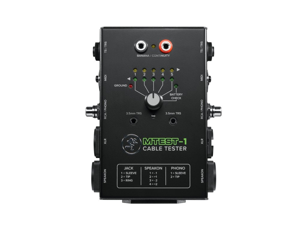 Zkoušečka kabelů MTEST-1 od společnosti Mackie testuje vetšinu kabelů, které se využívají v ozvučovací technice. Zkoušečka kabelů MTEST-1 rychle ostestuje každý pin přes 6 stupnový přepínač. Zkoušečka audio kabelů MTEST-1 manuálně otestuje spojitost kabelu. Audio zkoušečka je napájena 9 V baterií, a je vyrobena jako z velmi robustní konstrukce (Built-Like-A-Tank™).