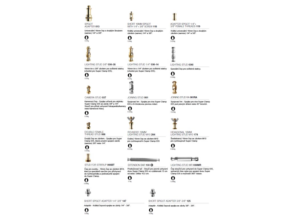 ADAPTER SPIGOT, univerzální 16mm spigot s dvojitým vnějším závitem 1/4" a 3/8", hmotnost 0,07kgDodatočné parametre