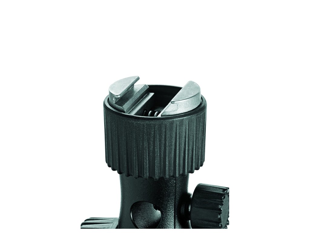 Manfrotto MLH1HS hotshoe je speciálně konstruován pro bezpečné uchycení vaší světelné techniky. Tato MLH1HS hotshoe je schopný nést 2 kg břemeno. Tento manfrotto Hotshoe je speciálně navržen tak, aby uchycení blesku bylo co nejrychleší. Součástí hlavy je otvor pro uchycení fotografického deštníku.