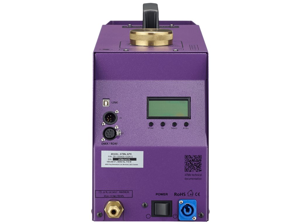 Vysoce výkonný generátor oparu ATMe je dalším vývojovým stupněm odvozeným od světově uznávaného ATMOSPHERE APS, průmyslového standardu posledních dvou desetiletí. Kanadská firma MDG je předním výrobcem generátorů mlhy, oparu a kouře, které jsou používány ve všech oblastech zábavního průmyslu, při vojenských a hasičských cvičeních, pro testování proudění vzduchu a aerodynamiky a v dalších průmyslových oborech, kde se osvědčily pro svou účinnost, spolehlivost, dlouhou životnost i tichý provoz.