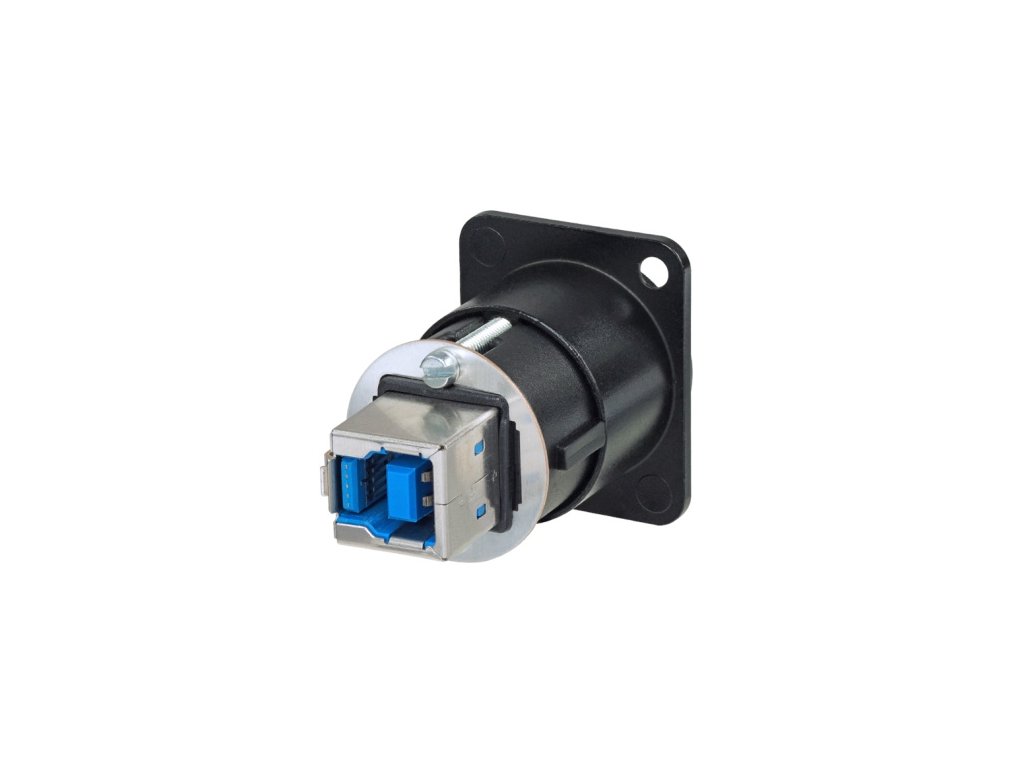 NAUSB3-B je otočitelný konektor/adaptér USB 3.0. ve standardizovaném D-Shape těle, které chrání tělo a umožňuje montáž do konektorového patch panelu.