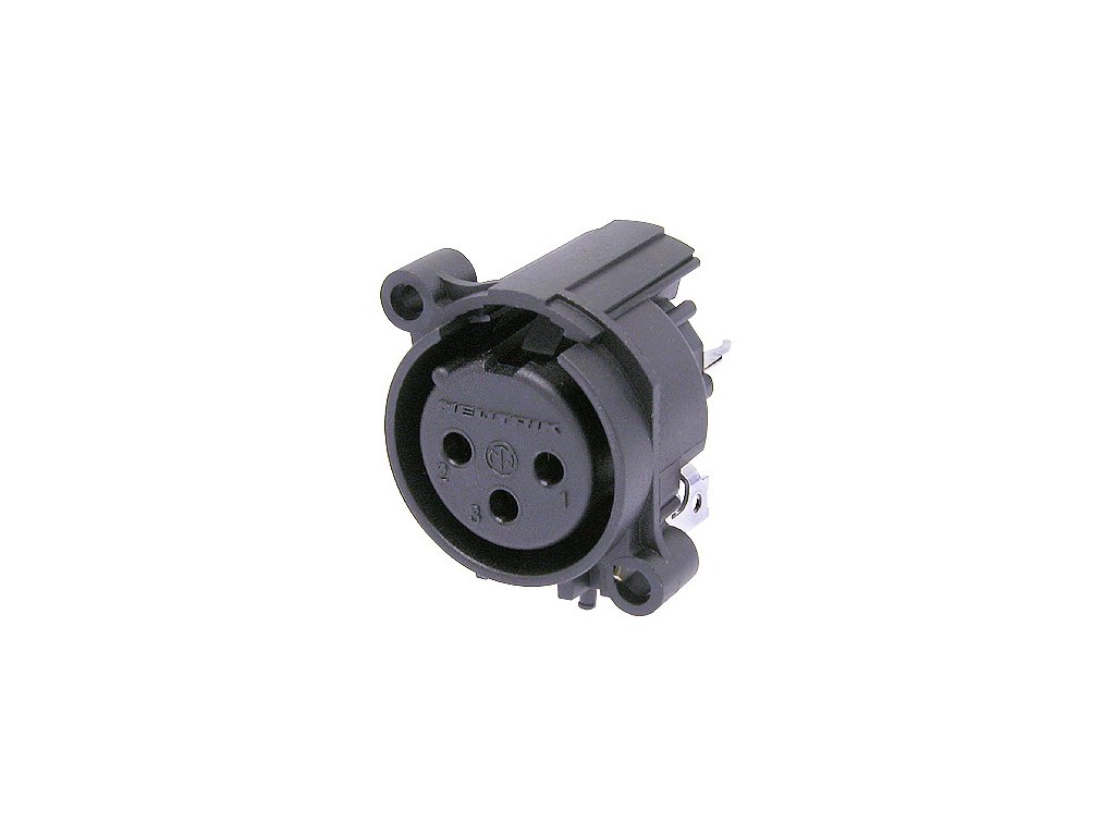 XLR female panel, plastové tělo, stříbrné kontakty, horizontální uchycení na DPS, s pojistkou (dodávána zvlášť)Dodatočné parametre