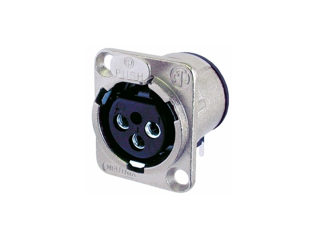 XLR female panel, niklové tělo, stříbrné kontakty, pro horizontální uchycení na DPS, vyměnitelný střed, s pojistkouDodatočné parametre