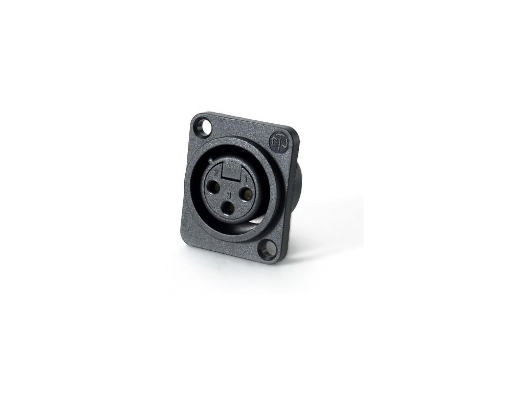 XLR female panel, plastové tělo, stříbrné kontakty, bez pojistkyDodatočné parametre