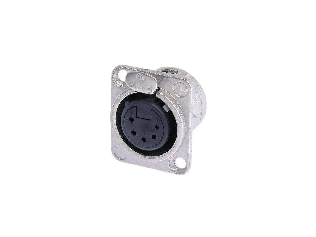 XLR female panel 5-pin, zinkové tělo, stříbrné kontakty, horizontální uchycení na DPS, pojistkaDodatočné parametre