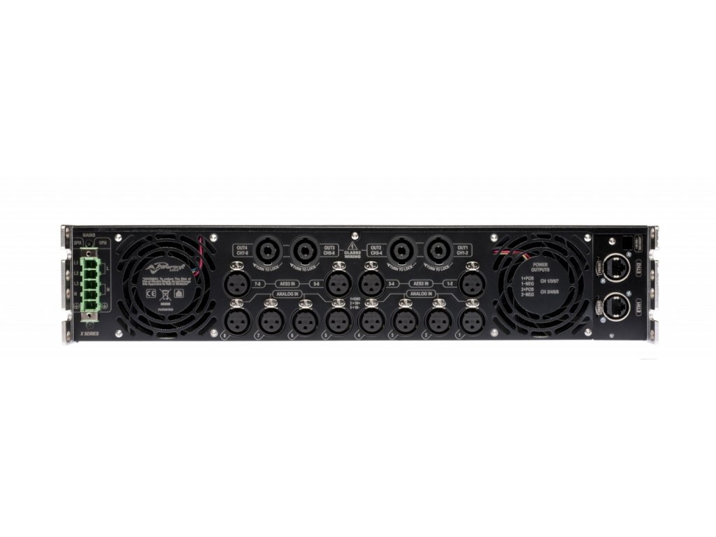 Powersoft X8 Dante inovuje celkovou koncepci výkonových zesilovačů. Dociluje toho integrací vlastního zesilovače a vysoce kvalitní DSP jednotky do jednoho zařízení. O kompletní management signálu se stará procesor ARM Cortex A-8 v kombinaci s TI C6000 DSP platformou. Kombinace těchto prvků přináší zcela novou úroveň v oblasti signálového processingu a obsahuje funkce jako jsou IIR\FIR filtry, zpoždění na 8 vstupech až 200ms, gain, nastavení polarity, crossover, peak limitery, TruePower limitery a Active DampingControl. Osazení kvalitním zdrojem je u výkonového zesilovače samozřejmostí a X8 DANTE není v tomto směru výjimkou. X8 DANTE je možno zapojit kdekoliv na světě a to bez nutnosti manuálního nastavení voltáže. Jeho provoz je možný na jedné, dvou či třech fázích a to velmi jednoduše, za pomocí True Three Phase load balancing systému jenž je součástí jednotky.