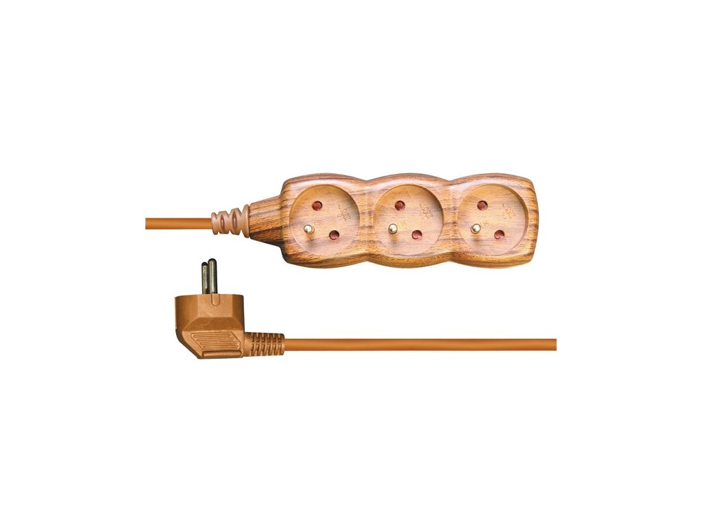 Prodl.přívod 3zás, 3m stř.tmav • prodlužovací přívod 3 zásuvky • 3m • středně tmavá dýha • ~250 V/10 A max. • vodič: H05VV-F3G 1 mm2