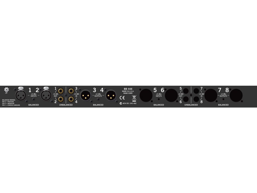 Rane BB 44x je symetrizační člen. Jedná se o profesionální přístroj, který se používá k oddělení a převodu signálu mezi nesymetrickými linkami konzumního audia a symetrickými linkami profesionálního vybavení. Převádí nesymetrických -10dBV z cinch konektorů na symetrických +4dBU s XLR konektory. Kromě toho umožňuje tuto koncerzi provést i opačně najednou. BB 44x převede jeden pár nesymetrického na symetrický a druhý pár naopaak. Obsahuje 4 cinch konektry a 2 XLR výstupy a 2 XLR vstupy.