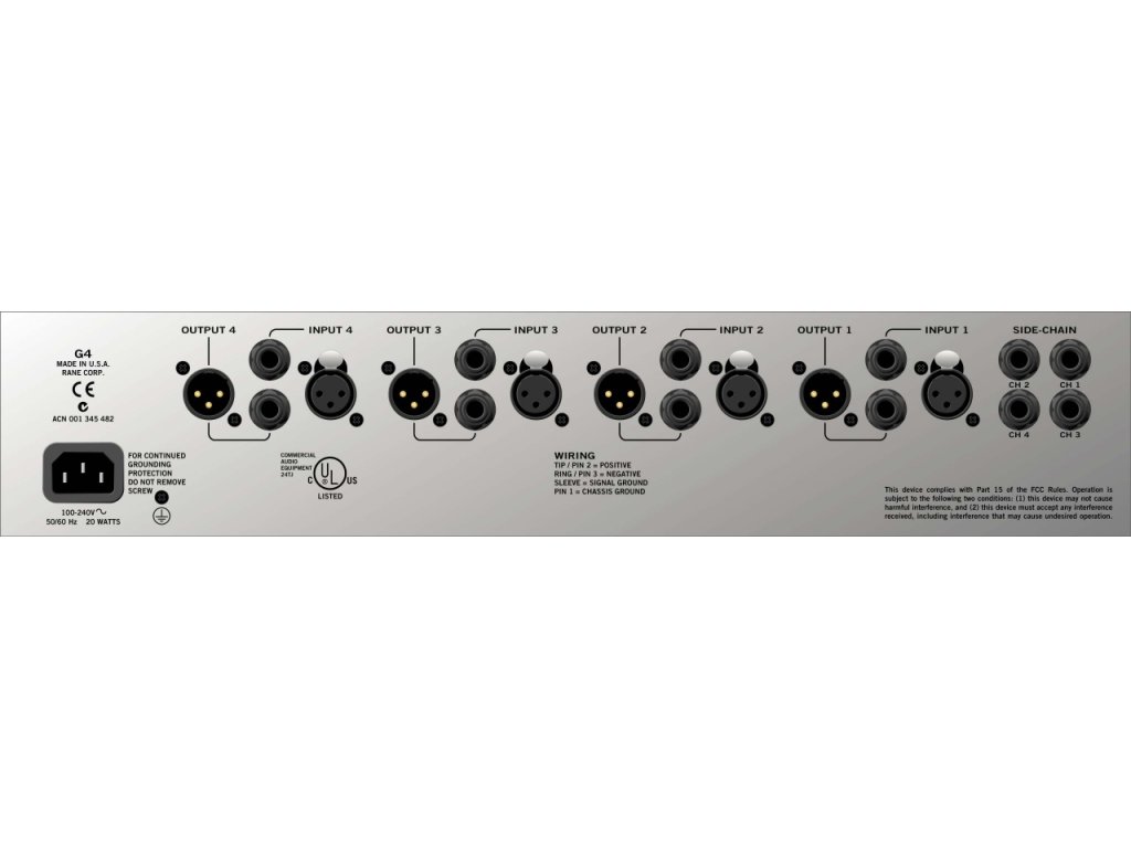 Kombinujíc běžné, notoricky známé oládání na předním panelu s přesností a výkonem digitálního jádra, je tento plně vybavený, vysoce výkonný čtyřkanálový gate připraven na použití v těch nejnáročnějších aplikacích. Gating, ducking a expanzní módy jsou k dispozici, spolu s high cut a low cut filtry a externími side-chain vstupy. Je ideálním nástrojem pro širokou škálu profesionálních aplikací.G4 je členem rodiny digitálních produkrů s analogovým ovládáním. Ta dále obsahuje: C4 (4ch compressor), AC24 crossover, DEQ60 a DEQ60L grafické EQ, a PEQ55 parametrický EQ.