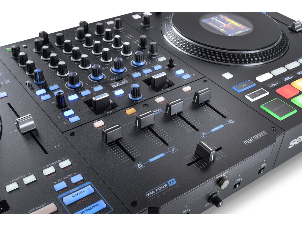 Stems můžete s Rane Performer ovládat 4 unikátními způsoby, který takto nastavuje standard pro kreativní open format DJing. Performer se pyšní exkluzivní funkcí STEM SPLIT od Rane, která automaticky rozděluje acapellu a instrumentální části skladby na 2 mixážní kanály, což umožňuje přidání efektů k jednotlivým prvkům a jejich úpravy v reálném čase. STEM LEVEL přeměňuje 3 pásmový EQ na každém kanálu na tři nastavovací ovladače, které umožňují upravovat, ztlumit nebo posílit jednotlivé Stemy.