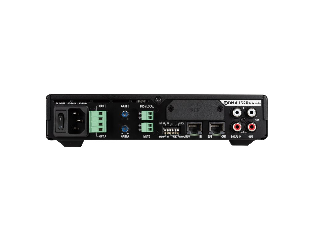 DMA 162P je dvoukanálový výkonový zesilovač pracující ve třídě D, vybavený výkonnou DSP platformou. Jeho typické použití je ve spojení s maticovým řídicím zesilovačem DMA 82 nebo DMA 162, kde umožňuje zvýšení výkonu nebo vytvoření vícezónové architektury.