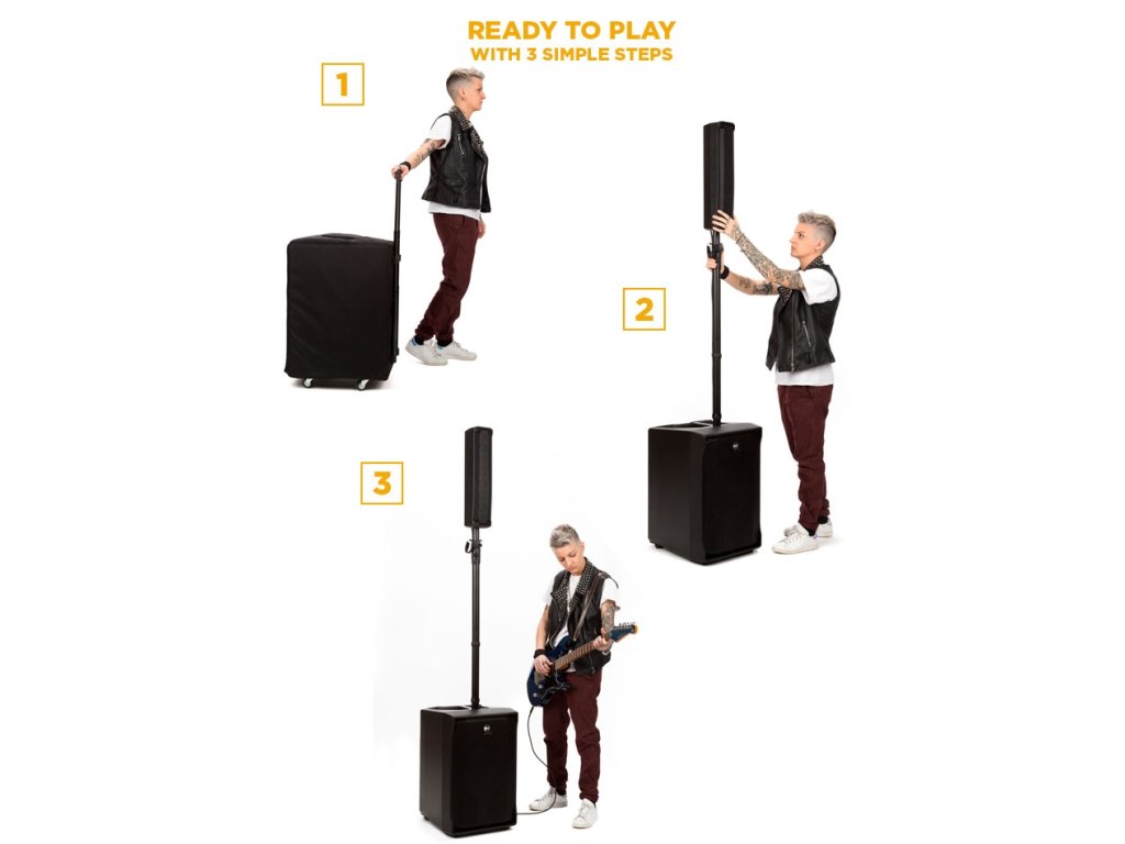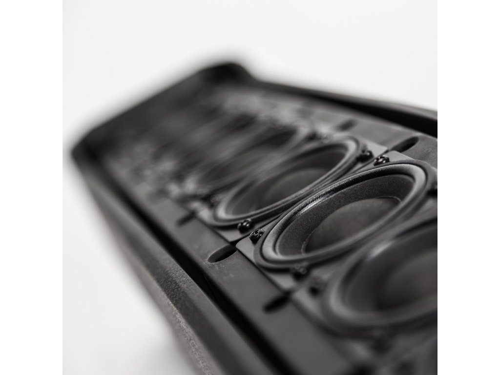 Unikátní přenosný a aktivní ozvučovací systém EVOX je zpět. Satelitní část je osazena osmi 2" reproduktory, které jsou umístěny v řadě nad sebou (Line source koncepce) a jsou společně s 12" basovým reproduktorem napájeny 700 W (RMS) Class D zesilovačem.