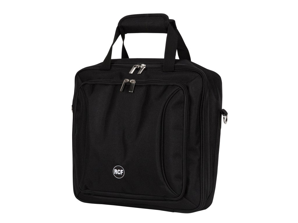Polstrovaná brašna pro mixážní pulty RCF F 10XR s uchem a popruhem přes rameno. Široká přední kapsa s dělenou sekcí pro tablety a další příslušenství.