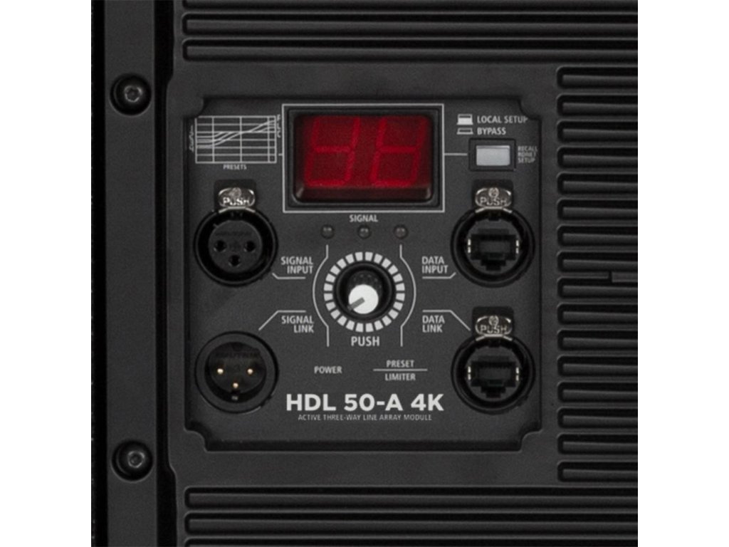 HDL 50-A 4K je aktivní 3-pásmový line array modul pro velké akce, jak vnitřní tak venkovní. Je vybaven osmi nejlepšími reproduktory ve své třídě a nabízí vynikající kvalitu zvuku ideální pro profesionální hudební aplikace. Patentovaný vlnovod 4PATH (90° x 10°) spolu se symetrickým uspořádáním reproduktorů pro jednotlivá pásma poskytují optimální pokrytí. Integrovaný 4-kanálový zesilovač třídy D produkuje nezkreslený signál o výkonu až 8000 W Peak (4000 RMS). Hladina hlasitosti reproboxu dosahuje až 143 dB.