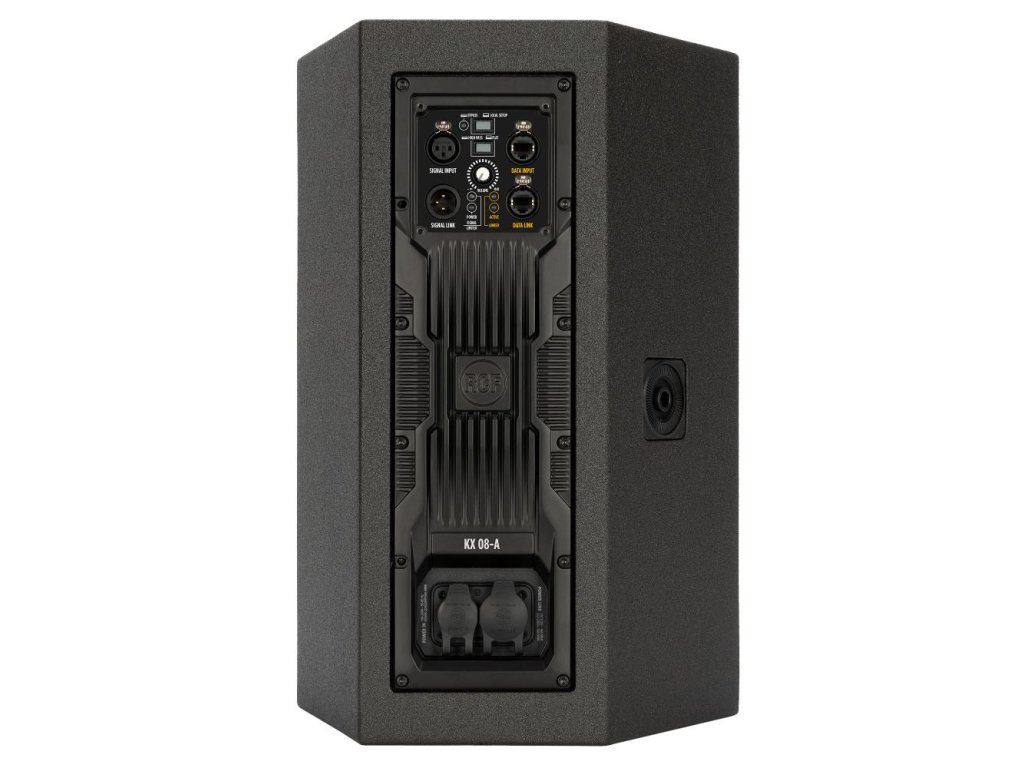 KX 08-A je kompaktní, vysoce výkonný dvoupásmový aktivní systém navržený pro profesionální uživatele. Kombinuje přesnou směrovost, vysoký akustický tlak a pokročilou systémovou integraci. Sekce pro nízké kmitočty je vybavena 8" neodymovým reproduktorem v bass-reflexovém uspořádání, zatímco sekce pro vysoké frekvence obsahuje neodymový kompresní driver s 1,75" PKX membránou, našroubovaný na 90° x 70° zvukovod True Resistive Waveguide, který lze otočit o 90°, což umožňuje flexibilní možnosti pokrytí. Integrovaný dvoukanálový 2000W zesilovač třídy D s proprietárním DSP zpracováním a možností vzdálené správy přes RDNet zajišťuje optimální výkon systému. Jeho odolný, vodotěsný multifunkční skelet s rychlým uchycením (Quick Fit) a závity M10 podporuje široké možnosti použití – od instalací na zem, přes umístění na stojan, až po zavěšení.
