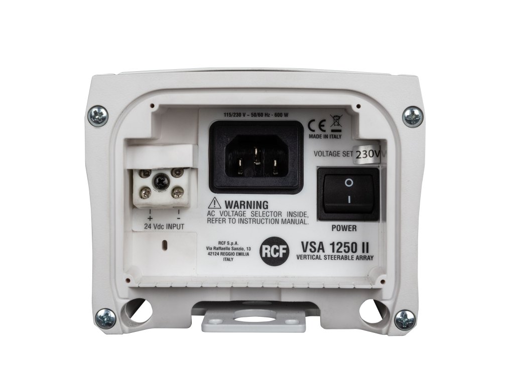 VSA 1250 II představuje jednu z nejnovějších aplikací RCF v oblasti technologie digitálního zvuku - sloupový aktivní reprobox s reproduktory samostatně napájenými v zájmu vytvoření vertikálně ovladatelného zvukového pole. Zvuk tak lze nasměrovat přesně do oblasti poslechu pro vyloučení nežádoucích odrazů od stropu a podlahy, které by ovlivnily srozumitelnost řeči, zejména v prostředích s kritickou dobou dozvuku. Výkonný vícekanálový DSP řídí simultánně dvanáct 50 W zesilovačů třídy D, které napájí 12 reproduktorů při optimálním headroom.