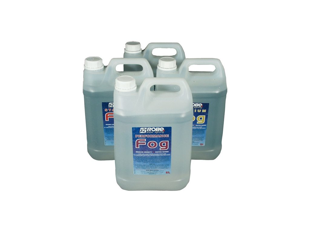 ROBE - Fog liquid performance • náplň pro výrobníky umělé mlhy • pomalý rozptyl • středně vysoká hustota • barva vzniklé mlhy bílá • kapalina na vodní bázi, nezanechává mastné fleky • bez zápachu, nedráždivá, netoxická a nehořlavá • obsah 5l