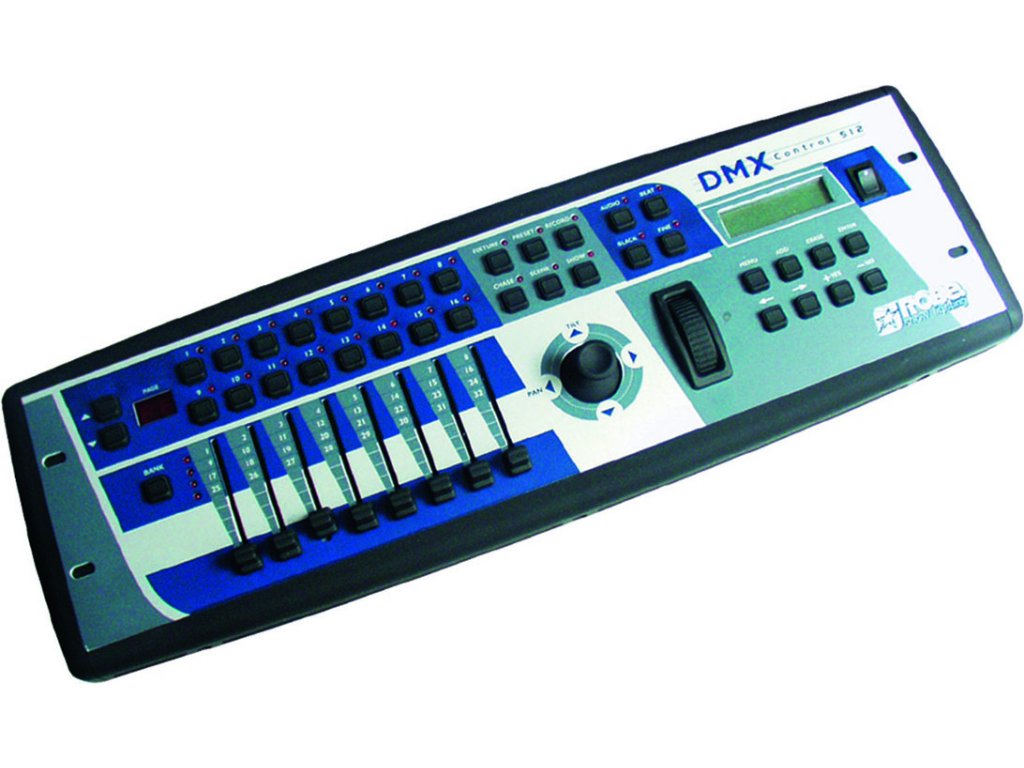 DMX ovladač inteligentních svítidel, 16 strojů po maximalně 32 kanálech, 1024 scén, 512 presetů, 256 shows, generátor efektů, MIDI, RS 232, Joystick, scroller, 8x potenciometr.Electrical Specification: