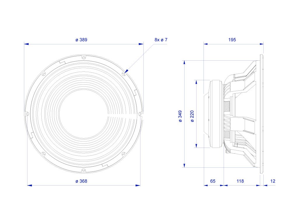Reproduktor 15", 1100W, 95dB, 35 - 3500Hz, 8 ohmDodatočné parametre