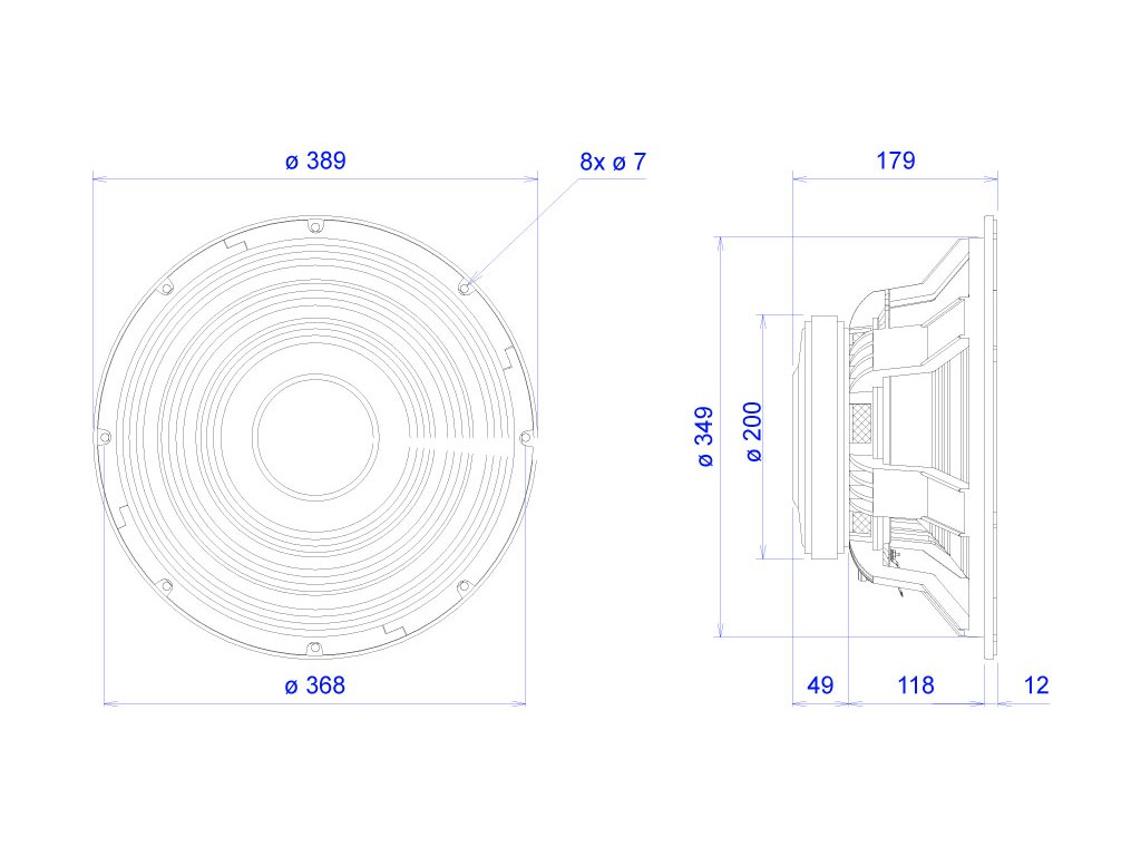 reproduktor 15", 600 W, 97 dB, 40 ÷ 3500 Hz, X-max 3,75 mm, 8,5 kgDodatočné parametre
