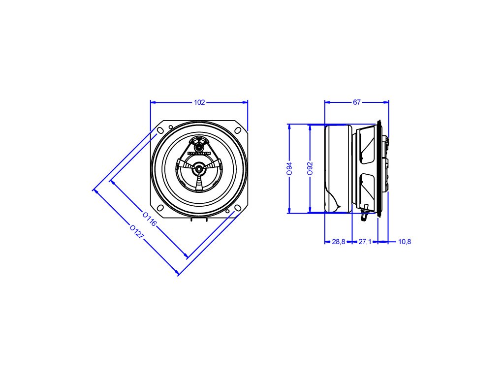 Autoreproduktor, Triaxial 4", 50/100W, 4 ohm, SPL 87 dB, 90Hz - 20kHz, X-max 1,75mm, hmotnost 1,8kgCena je za balení které obsahuje 2 kusy reproduktorů. Tyto reproduktory nemají krycí mřížky.