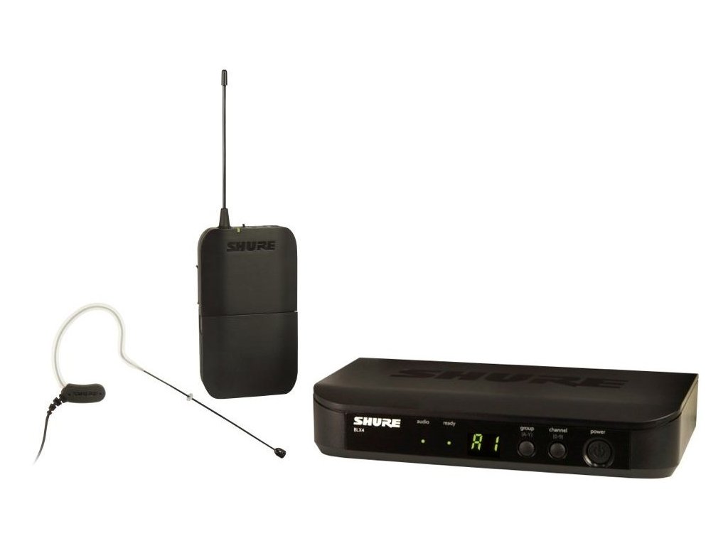 Shure - BLX14E/MX53 K3E • bezdrátová sada • mikrofon za ucho (earset) MX153 + vysílač BLX1 + přijímač BLX4 • pracovní frekvence: 606-630 MHz