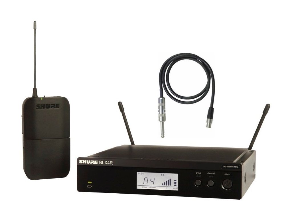 Shure - BLX14RE K3E • bezdrátová kytarová a nástrojová sada • nástrojový kabel WA302 + vysílač BLX1 + přijímač BLX4R • pracovní frekvence: 606-630 MHz