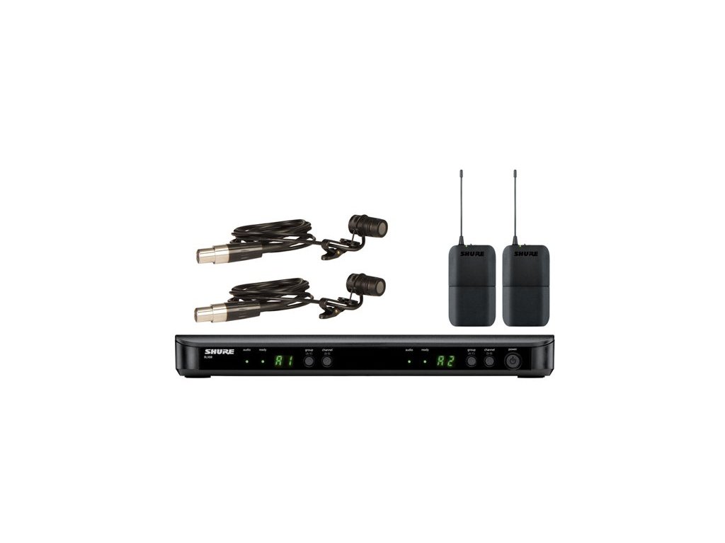 Shure - BLX188E/W85 K3E • duální bezdrátová sada • 2x klopový mikrofon (lavalier) WL185 + 2x vysílač BLX1 + přijímač BLX88E • pracovní frekvence: 606-630 MHz