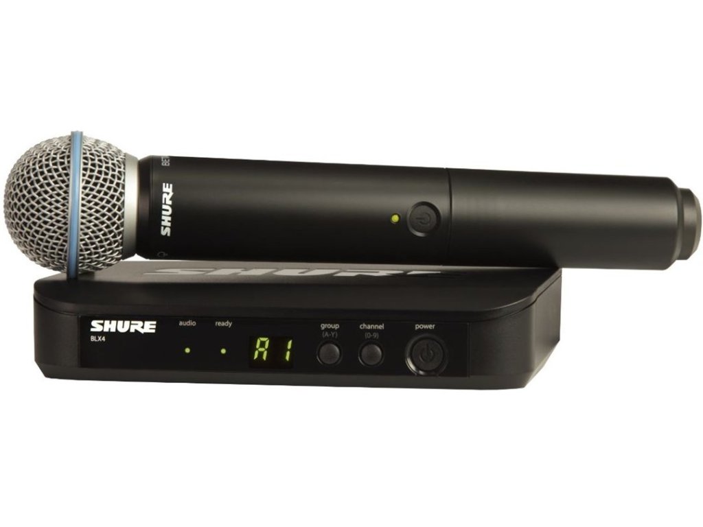 Shure - BLX24E/B58 M17 • bezdrátová sada • ruční vysílač s mikrofonní vložkou Beta 58A + BLX2 + BLX4E • 2x AA baterie • automatická synchronizace s přijímačem • dosah: 91 m • možnost provozu až 12 systémů současně • pracovní frekvence: 662-686 MHz