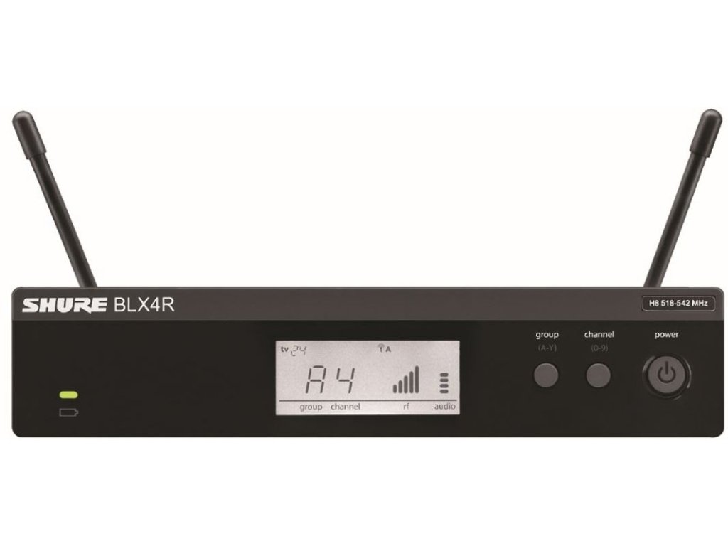 Shure - BLX4R M17 • bezdrátový přijímač • provedení do racku • diverzitní konstrukce • automatická synchronizace přijímače/vysílače • dosah: 91 m • možnost provozu až 12 systémů současně • součástí dodávky: hardware pro montáž do racku • pracovní frekvence: 662-686 MHz