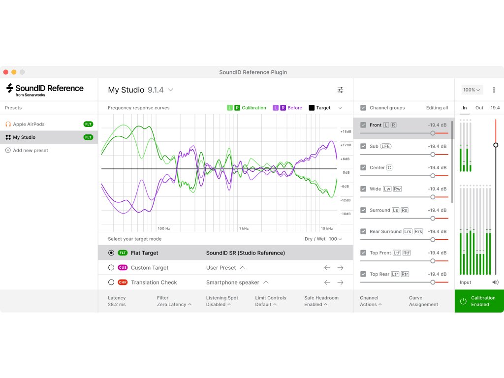 SoundID Reference for Multichannel, tedy Sonarworks kalibrace navržená pro vícekanálové aplikace přináší spolehlivý referenční zvuk v rámci jednoduchých stereo sestav až po 9.1.6 atmos systémy. Software můžete také použít s více než 480+ různými modely sluchátek, které se přibývají v rostoucí knihovně kalibračních profilů Sonarworks. Dosáhnete tak stejného referenčního zvuku na studiových monitorech tak pro sluchátka.