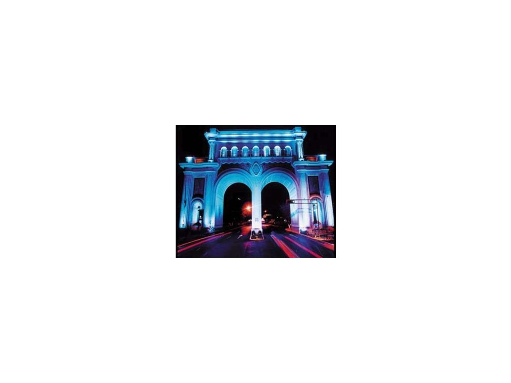 architektonické svítidlo, colorchanger CYM mix, lampa BA800/SE, funkce master-slave, proměnný úhel 40°x45°, hmotnost 62kg, IP 66 OUTDOORLAMPS